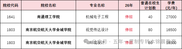 1.南京工业职业技术大学(机电电子工程技术):招生计划缩招 15 人(25 年 55→26 年 40)